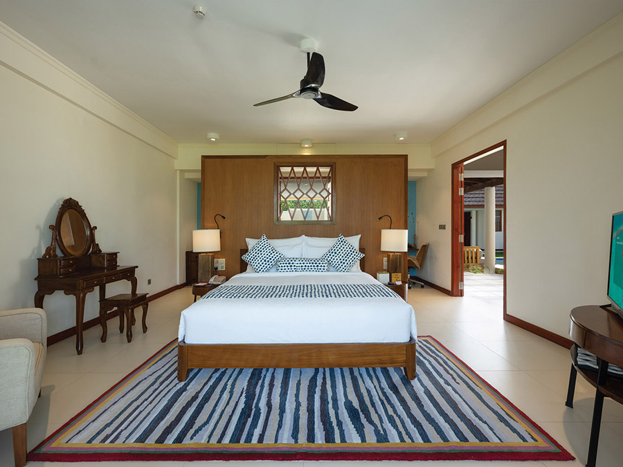 第四,酒店108栋豪华别墅,房间面积大,设施现代化,风格简约奢华,部分房型设有私人泳池,适合情侣、家庭、蜜月度假。