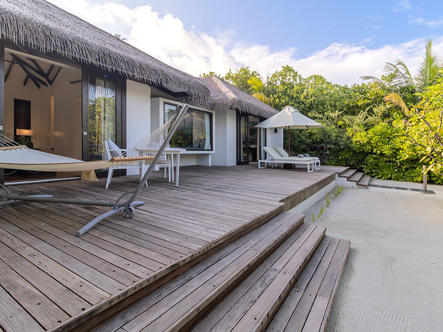 房型介绍:沙滩别墅总共有9间,每间的面积175平米,别墅宽敞,客厅朝东,以白色墙壁和深色木质内饰,低调优雅,从飘窗望去,拥有无边的海景,从日光浴甲板可直达细白的沙滩。该房型最多可以入住3名成人或者2名成人和2名儿童。 -