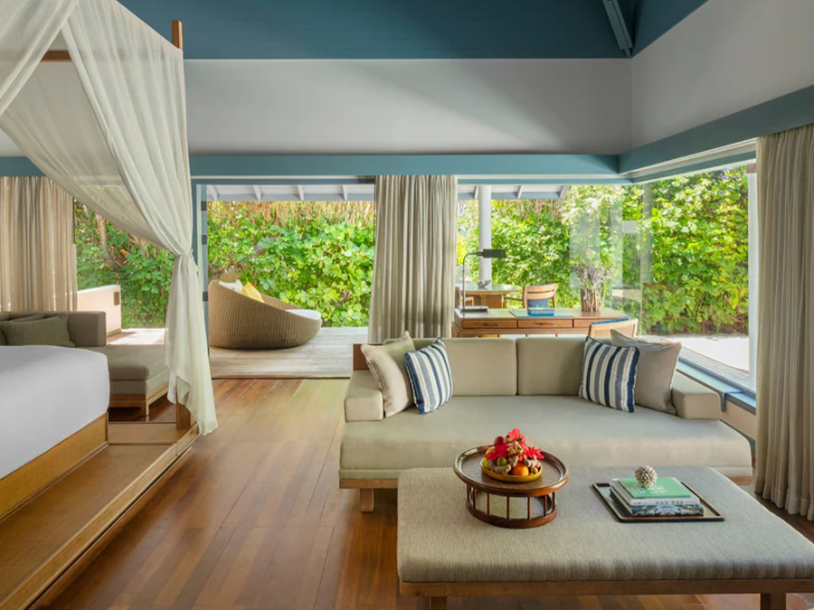 房型介绍:酒店的基础房型,面积达到了220平米,设施一应俱全。这里不仅有私人沙滩,还有一个大泳池,最多可入住2个大人。室内调色板从海洋环境中汲取灵感,舒缓感官。宽敞的户外空间,包括一个私人花园和游泳池,一个宽敞的阳台直接对着海滩,你可以完全放松,并吸收这个特别的地方的不寻常的氛围。房号分别为:9、16、20、21、22。 -