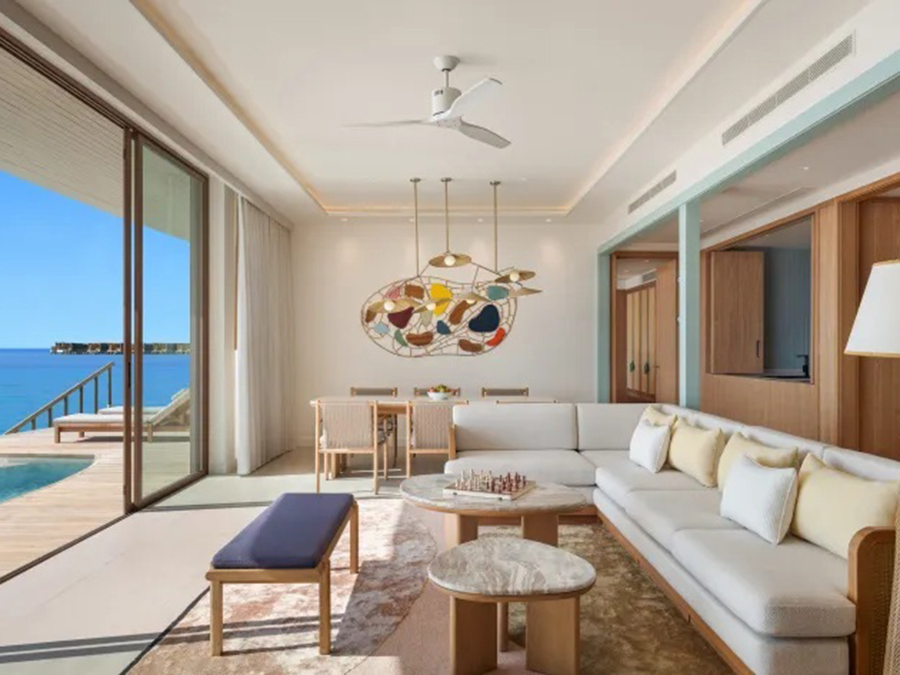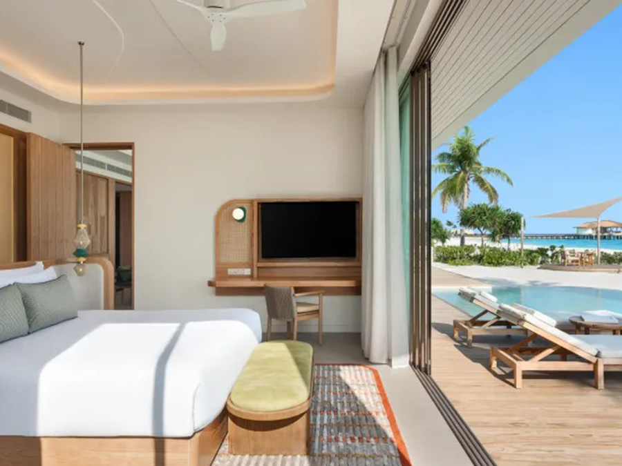 中央至尊岛Centara Grand Lagoon Maldives于2025年4月开业,属于盛泰乐酒店及度假村集团Centara Hotels & Resorts旗下。酒店位于北马累环礁,从马累出发快艇40分钟上岛。岛上总共有142间别墅,面积从100到400平方米不等,以柔和的天然色调装饰,配备现代化设施。每间客房均提供大床或双床配置,并配有私人泳池、按摩浴缸或两者兼具,让您尽享无与伦比的放松体验。部分房型设有连通门,特别适合家庭或团体宾客。岛上共3家餐厅、2家酒吧,一价全包度假村内所有餐厅均可选。