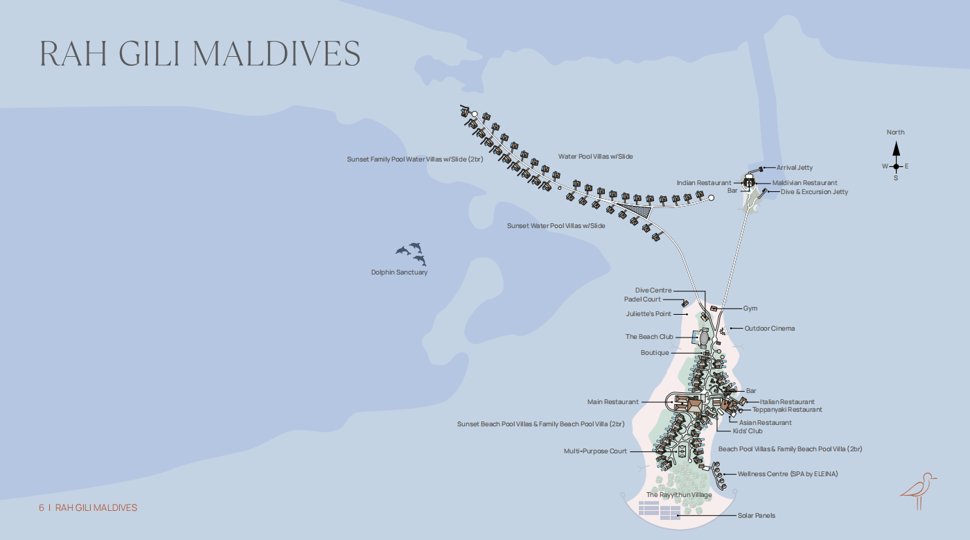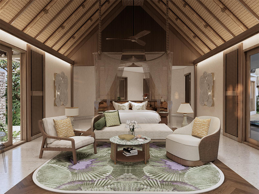 马尔代夫芮吉丽岛RAH GILI是SIX & SIX PRIVATE ISLANDS推出的首个度假村,计划于2026年2月盛大开业。酒店坐落于南马累环礁附近一处隐秘的海豚保护区旁,乘快艇仅需40分钟即可抵达。这里拥有74栋别墅,其中37栋为沙滩别墅,37栋为带滑梯的水上别墅,面积从171至257平方米,每栋均配备私人泳池和宽敞的室内外空间布局,设计融合波西米亚风情与精致美学。餐饮体验涵盖六家餐厅和四家酒吧,提供亚洲风味、日式铁板烧、意大利风味等国际美食。除此之外,还提供目的地主题餐饮、快闪店及别墅内用餐。岛上设施包含了健身房、儿童俱乐部、露天影院、精品店、运动场地、水上运动项目及 PADI认证潜水中心。