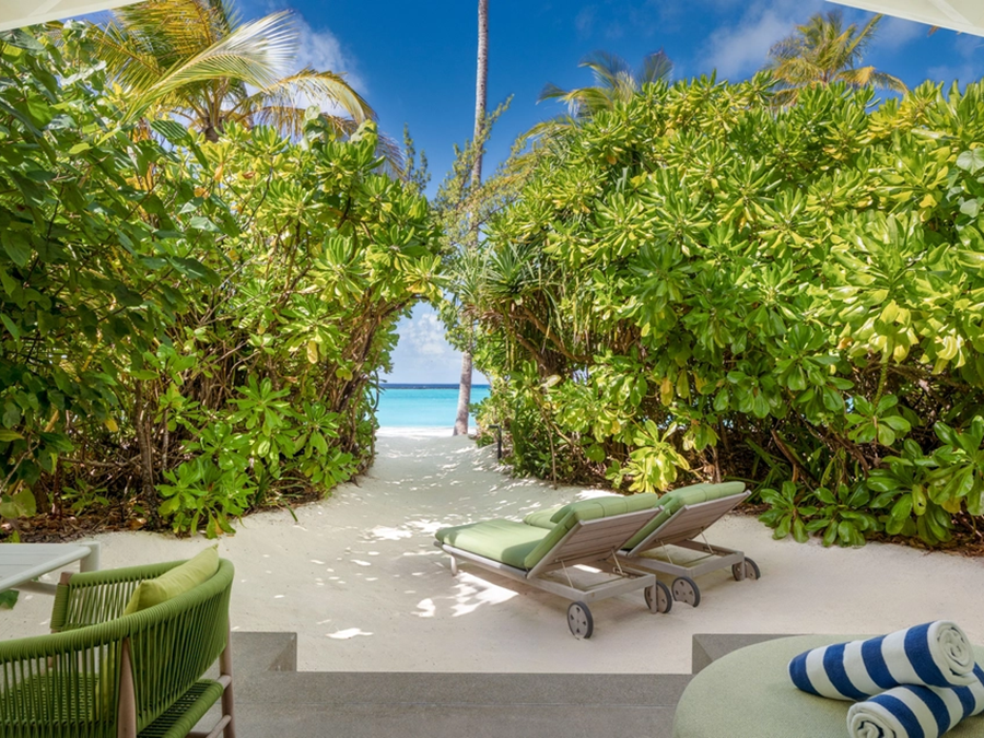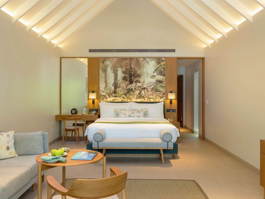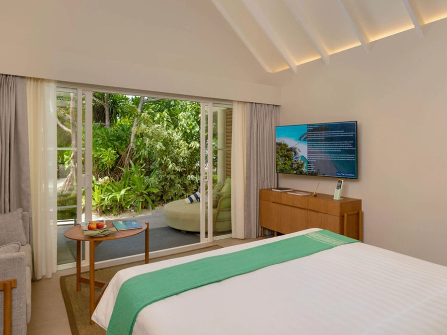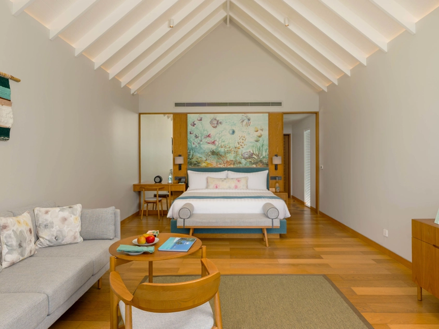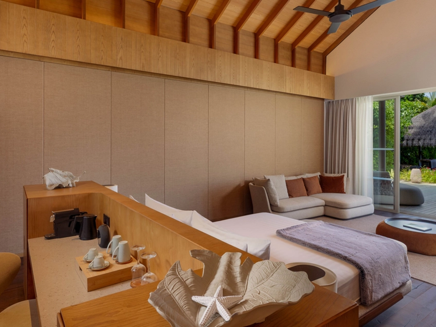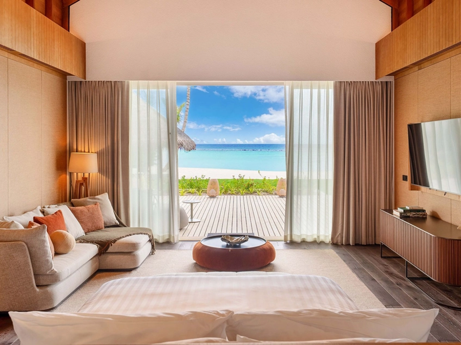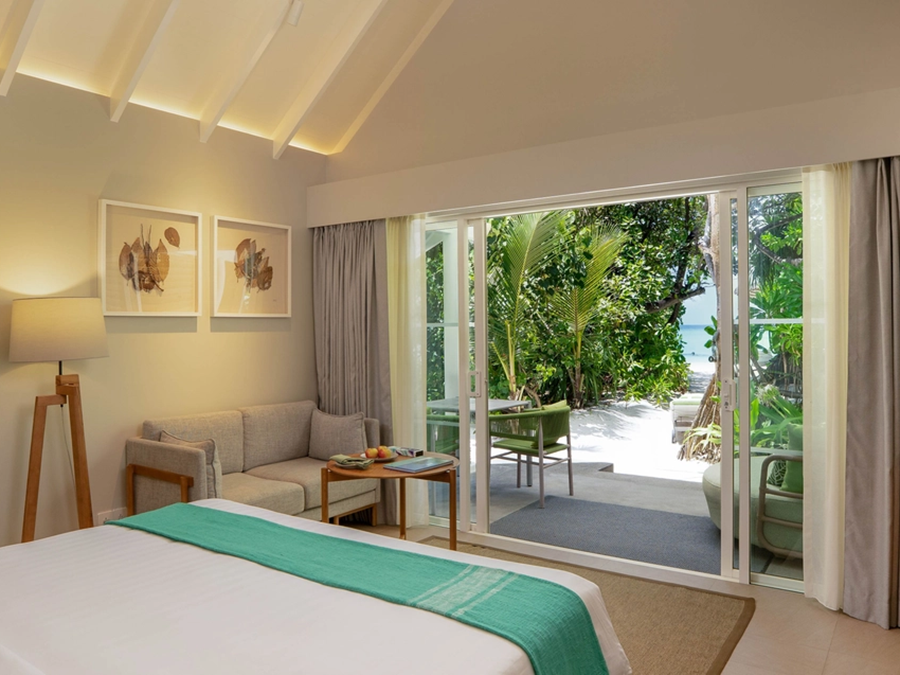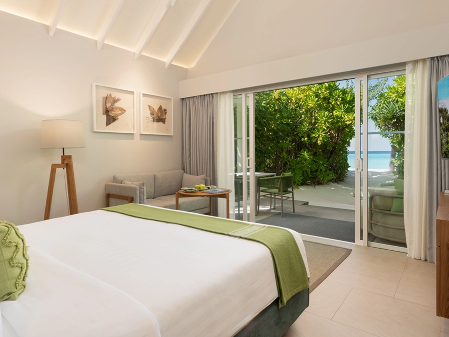 房型介绍:这是岛上的基础沙滩房型,面积61平米,不带私人泳池,最多可入住2名成人。躺在柔软的特大号床上,从各个角度欣赏海滩和湛蓝印度洋的美景。每栋现代化的马尔代夫海滩别墅均设有私人露台、用餐区、柔软的沙发、大尺寸电视,可以直接通往海滩。 -