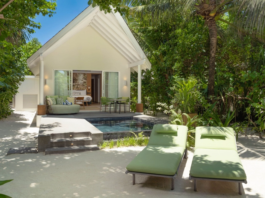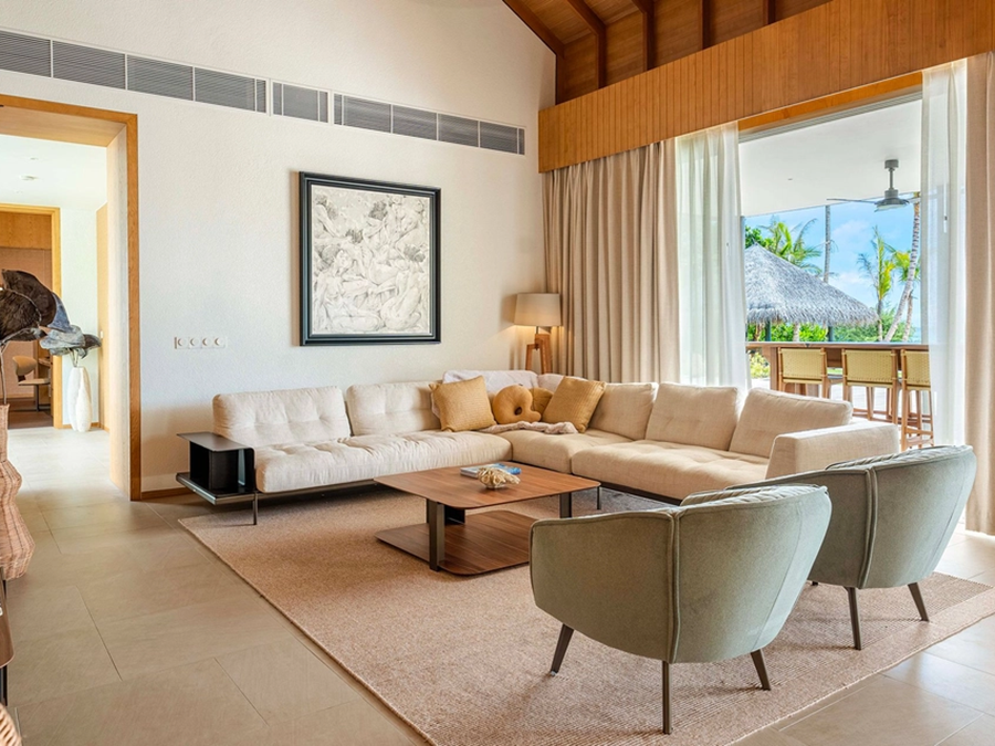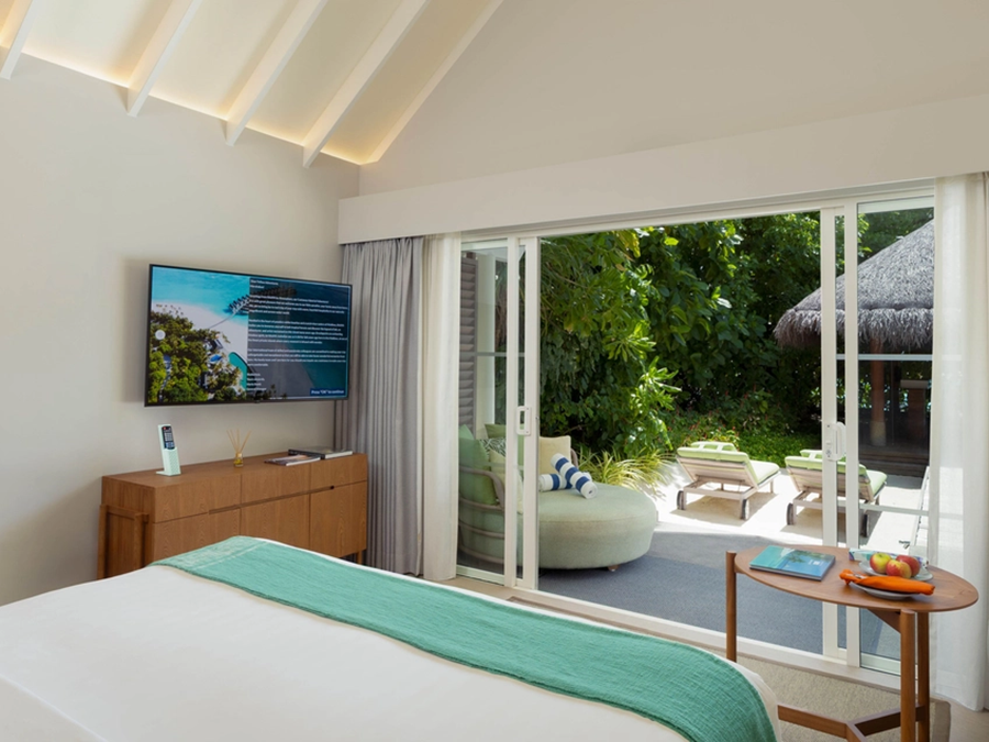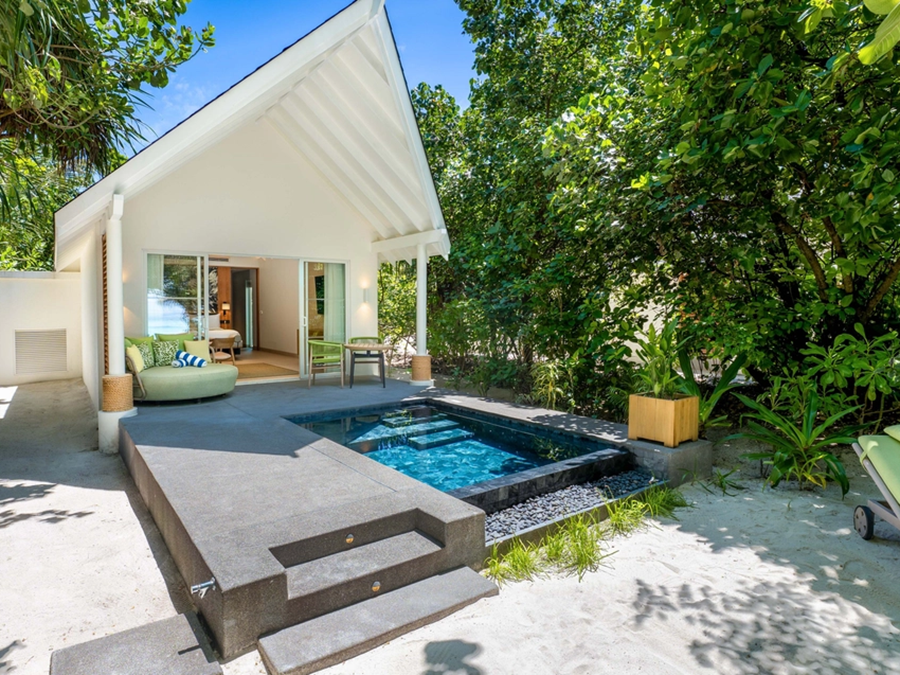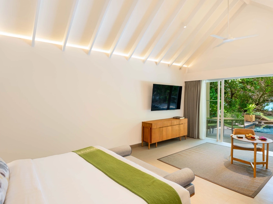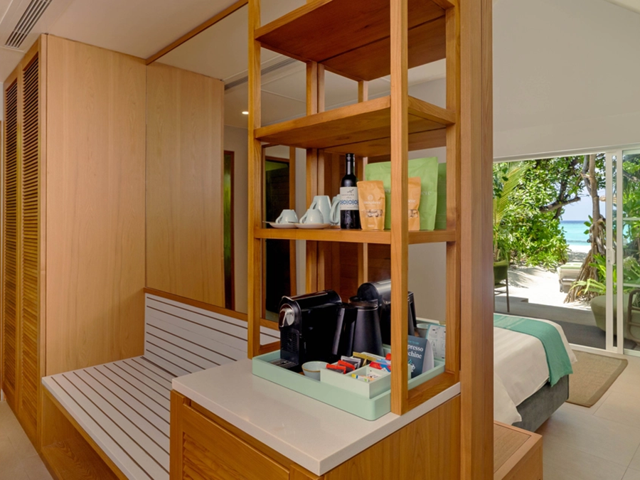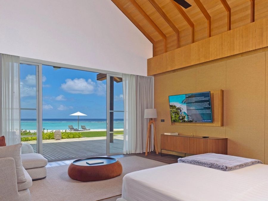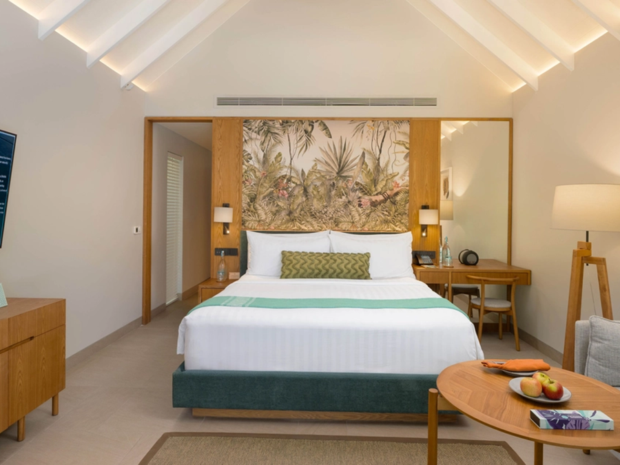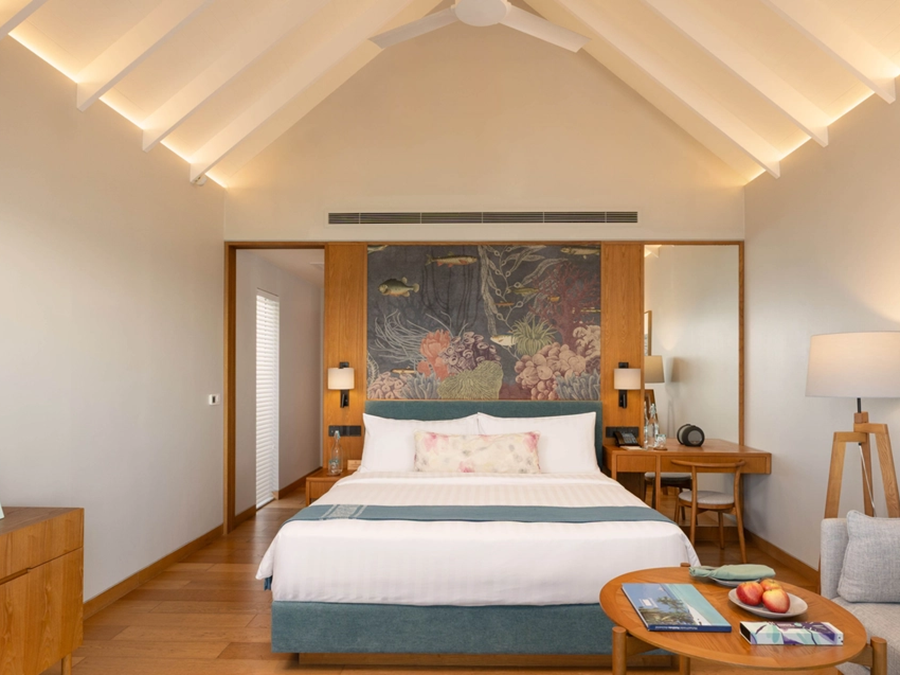 房型介绍:这是岛上的基础沙滩房型,面积61平米,不带私人泳池,最多可入住2名成人。躺在柔软的特大号床上,从各个角度欣赏海滩和湛蓝印度洋的美景。每栋现代化的马尔代夫海滩别墅均设有私人露台、用餐区、柔软的沙发、大尺寸电视,可以直接通往海滩。 -