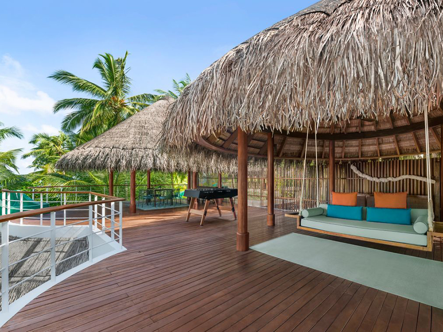 房型介绍:逃逸一卧海滩别墅,是岛上的沙屋房型,总共只有23间,都是双层设计,你可在私人泳池中尽享清凉,也可以从二楼观景台上饱览印度洋和海滩一览无余的壮丽景象,尽情的放松休闲。 -