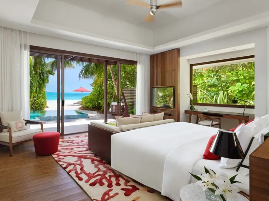第二,酒店定位高端时尚,房间舒适宽敞,特别是房间的大床非常舒服。在餐饮方面选择很多,品质上乘,还有马尔代夫第五家海底餐厅(SubSix),位于水下6米;