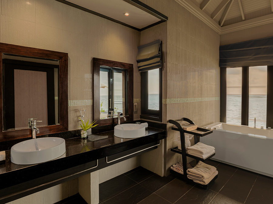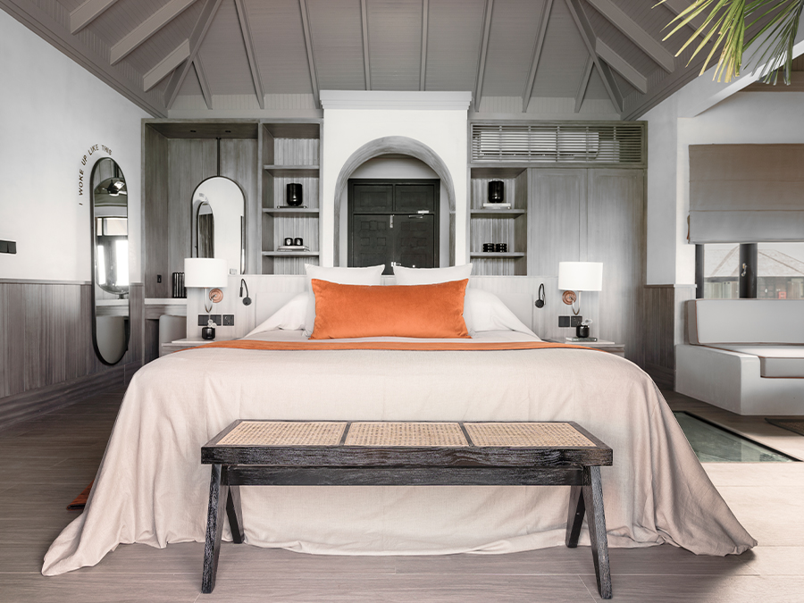 房型介绍:房间面积更大,但是此房型私人泳池在后院,最多可入住4大1小或者2大3小,非常适合家庭度假和与朋友聚会。所有房间都拥有私人游泳池和室外休息室,餐桌、椅子、凉亭就设在海滩上正对着大海。 -