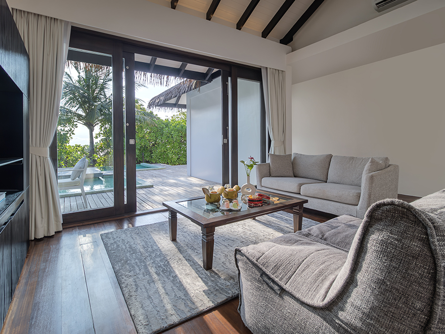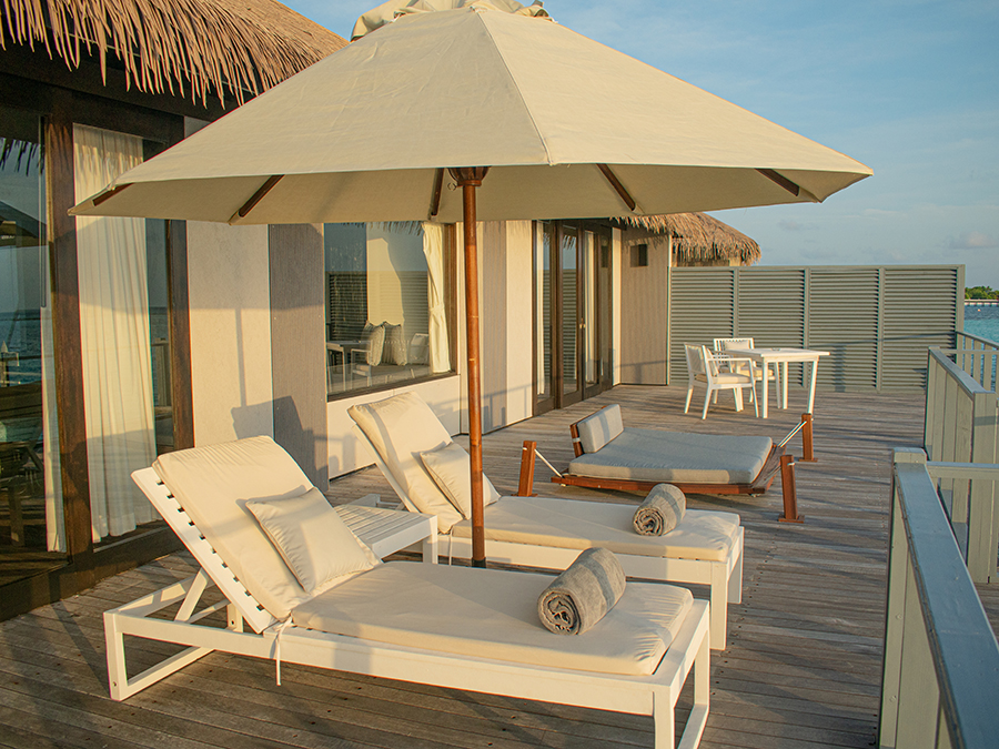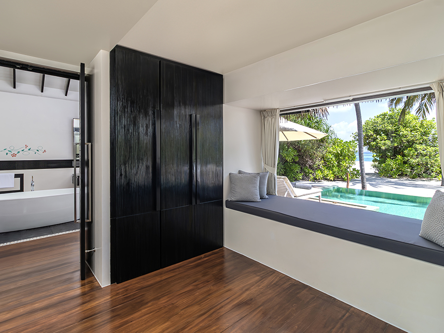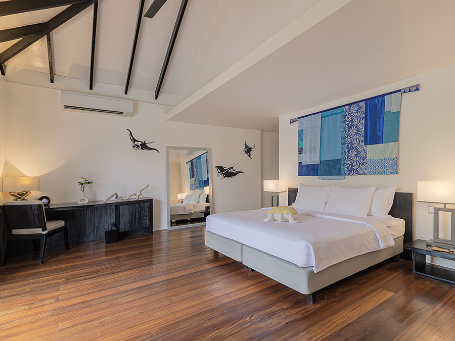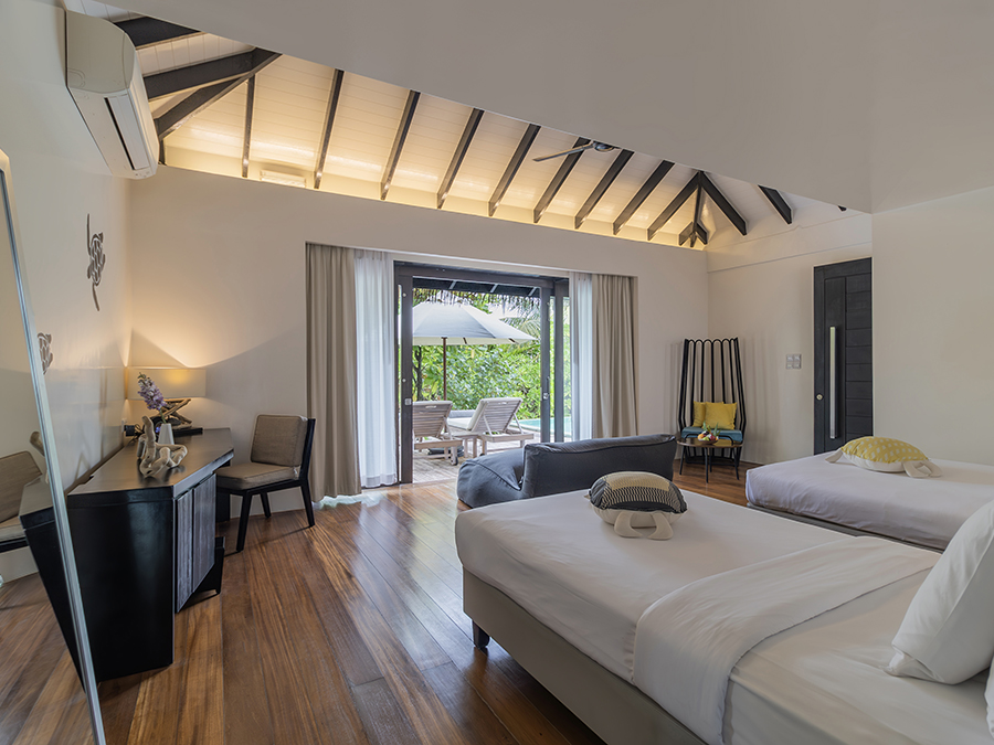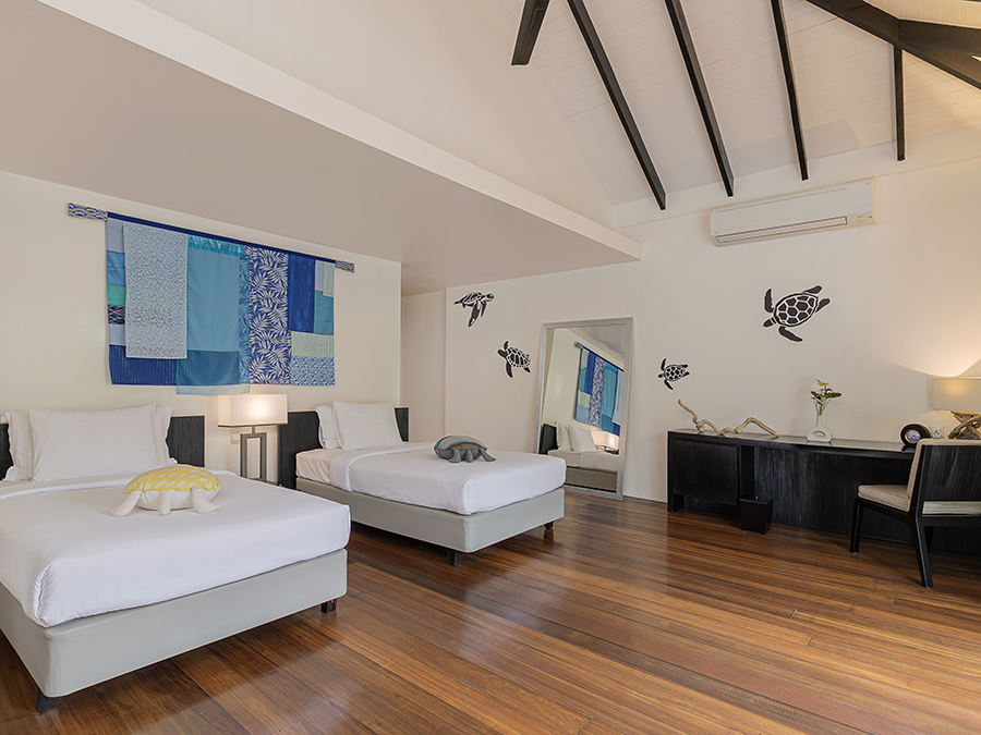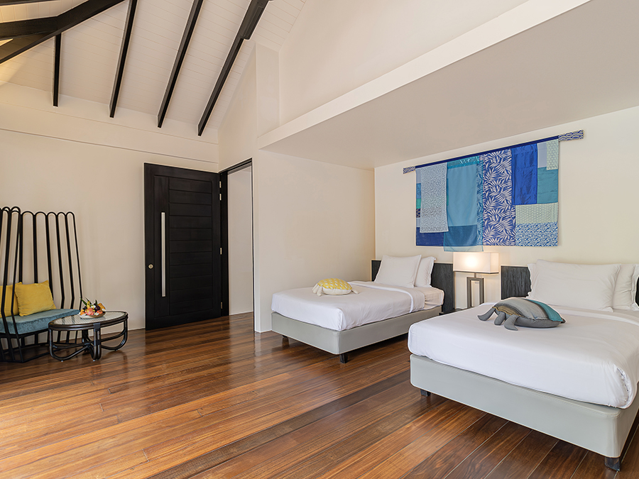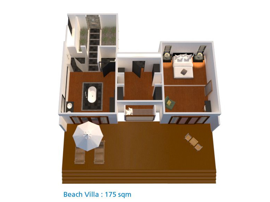 房型介绍:沙滩别墅总共有9间,每间的面积175平米,别墅宽敞,客厅朝东,以白色墙壁和深色木质内饰,低调优雅,从飘窗望去,拥有无边的海景,从日光浴甲板可直达细白的沙滩。该房型最多可以入住3名成人或者2名成人和2名儿童。 -
