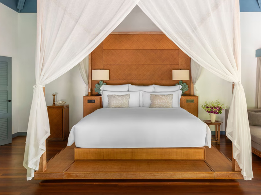第二,这里所有房型均带私人泳池,并配备私人管家,最小的房型也有220平米,卧室还有3*2米的超级大床,水屋还有网床等设施;