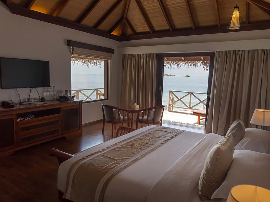 房型介绍:海滩别墅设计简单,装修采用正宗的马尔代夫风格,每个海滩别墅都有一个室内或室外浴室,配有室内淋浴器、豪华浴缸和可直接从海滩进入的室外淋浴,一个悬挂式座椅和日光浴休息室。双层玻璃门直通私人阳台,直达白色沙滩。 -