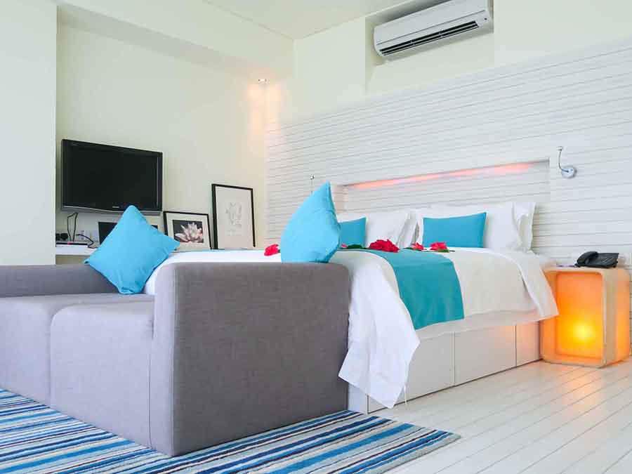 房型介绍:沙滩别墅总共有44间,属于单层联排别墅,位于沙滩边上,此房型基本上没有在迎浪面,可以直接看到大海。房间面积48平米,最多可入住3个大人或者2大1小。这里离沙滩和大海只有几步之遥。马尔代夫康杜玛度假酒店拥有充足的私人空间供您放松,享受沙滩别墅卧室的舒适。别墅配备了现代设施和便利设施,从室外露台和吊床到室外淋浴。 -