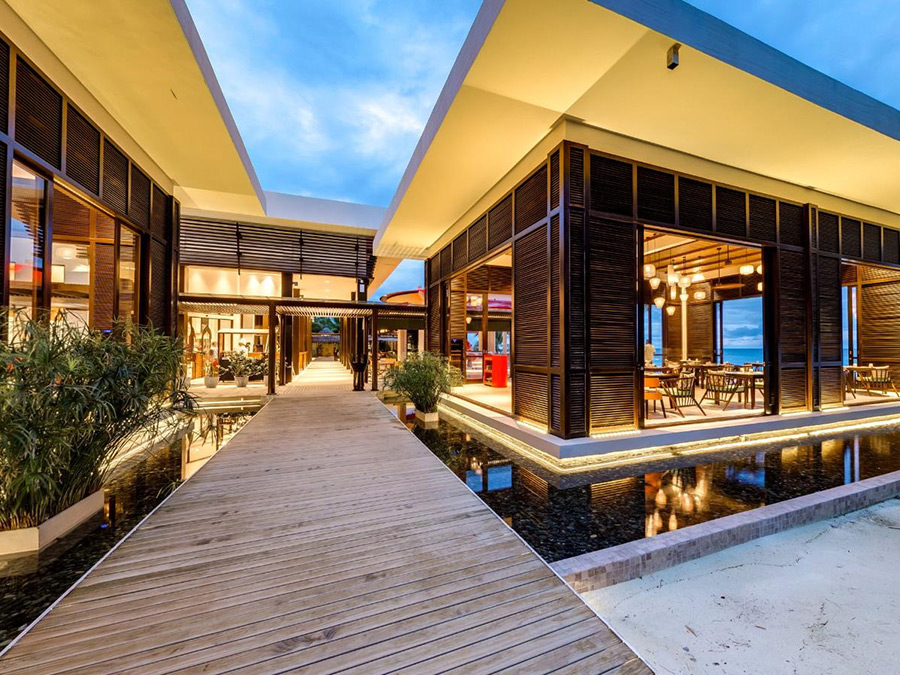 餐厅介绍:主餐厅位于主岛无边泳池旁,提供早餐、午餐和晚餐,还供应新鲜的特色小吃。主要提供自助餐、也可以有部分点餐菜式,有现场烹饪台,每天还会有不同的主题晚餐。