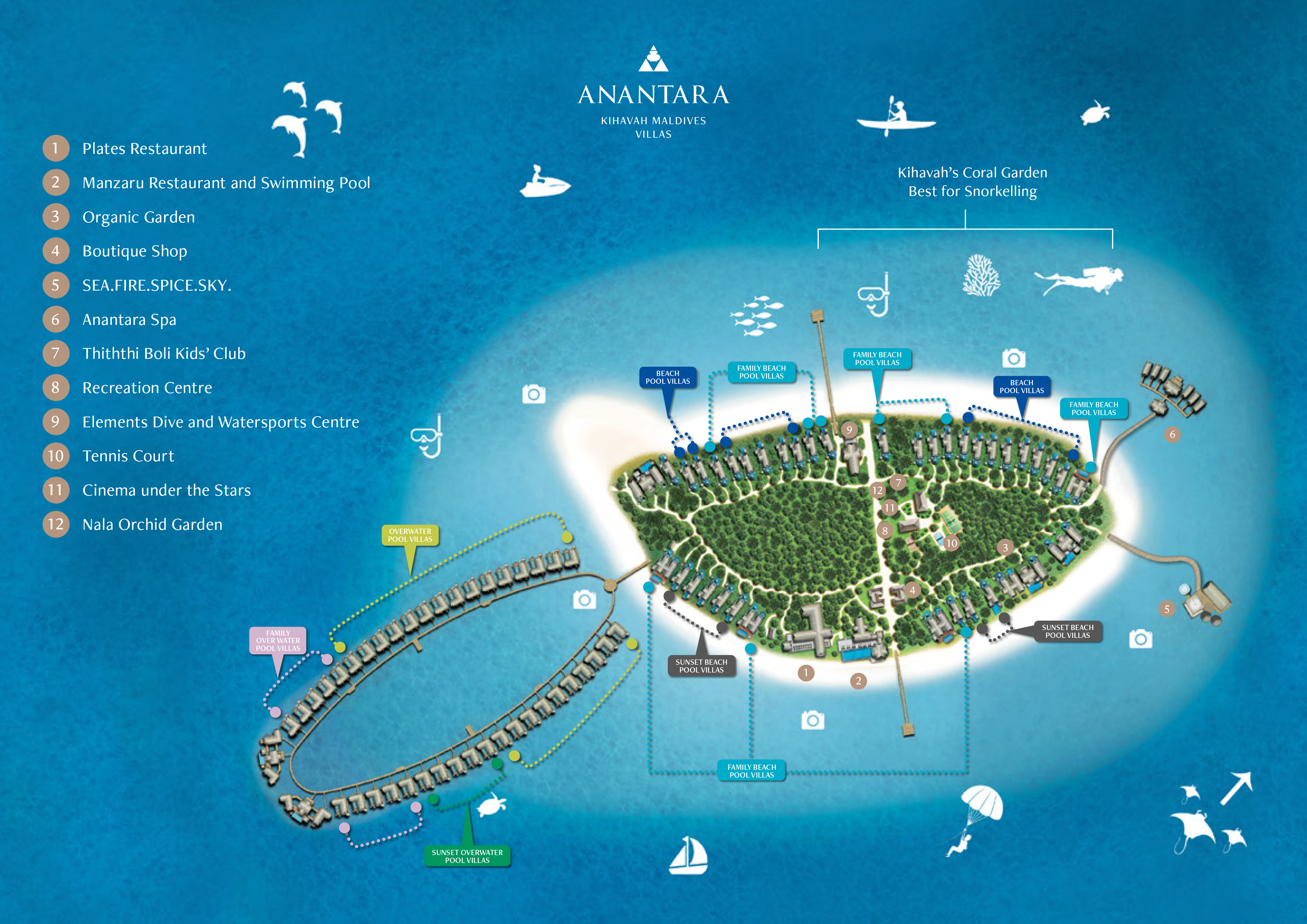 马尔代夫安纳塔拉吉哈瓦岛(Anantara Kihavah Villas)观看岛屿360°全景游,于2011年2月正式开业。酒店位于芭环礁(Baa Atoll),从马累乘坐水上飞机35分钟即可抵达,也可以选择乘内陆飞机+快艇上岛。这里还有世界上最浪漫的餐厅——“SEA海底餐厅”,提供“马尔代夫龙虾”、“中式鹅肝”、“铁板宫崎和牛”、“加拿大扇贝”等,每一道菜都会搭配一杯不同年代的精选美酒,这种浪漫体验,每一秒都是人生巅峰。从硬件条件上讲某些方面已经超过港丽岛的水下餐厅。
