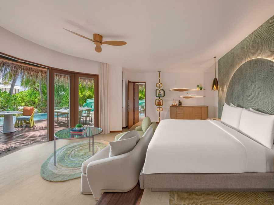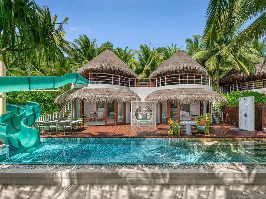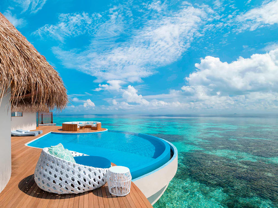 第三,酒店房间都带私人泳池,沐浴用品皆为国际大牌。另外还有水飞上岛、软饮补给、时尚酒店,双层沙屋(Wonderful Beach Oasis)这些配置,更是让人感动不已,完全可以满足你对马尔代夫所有对幻想。