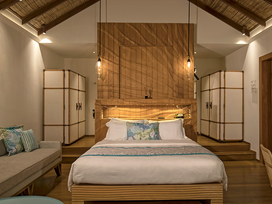 房型介绍:别墅不带私人泳池,面积57平米。都集中在大潟湖一侧,在两侧水屋的中间,不管是便捷性、下海浮潜或者看海景,都很棒。别墅内功能设施齐全,并且还设置了一个木制阳台,让你可以在悠闲的午后,尽情的享受着岛上的异域风情。 -